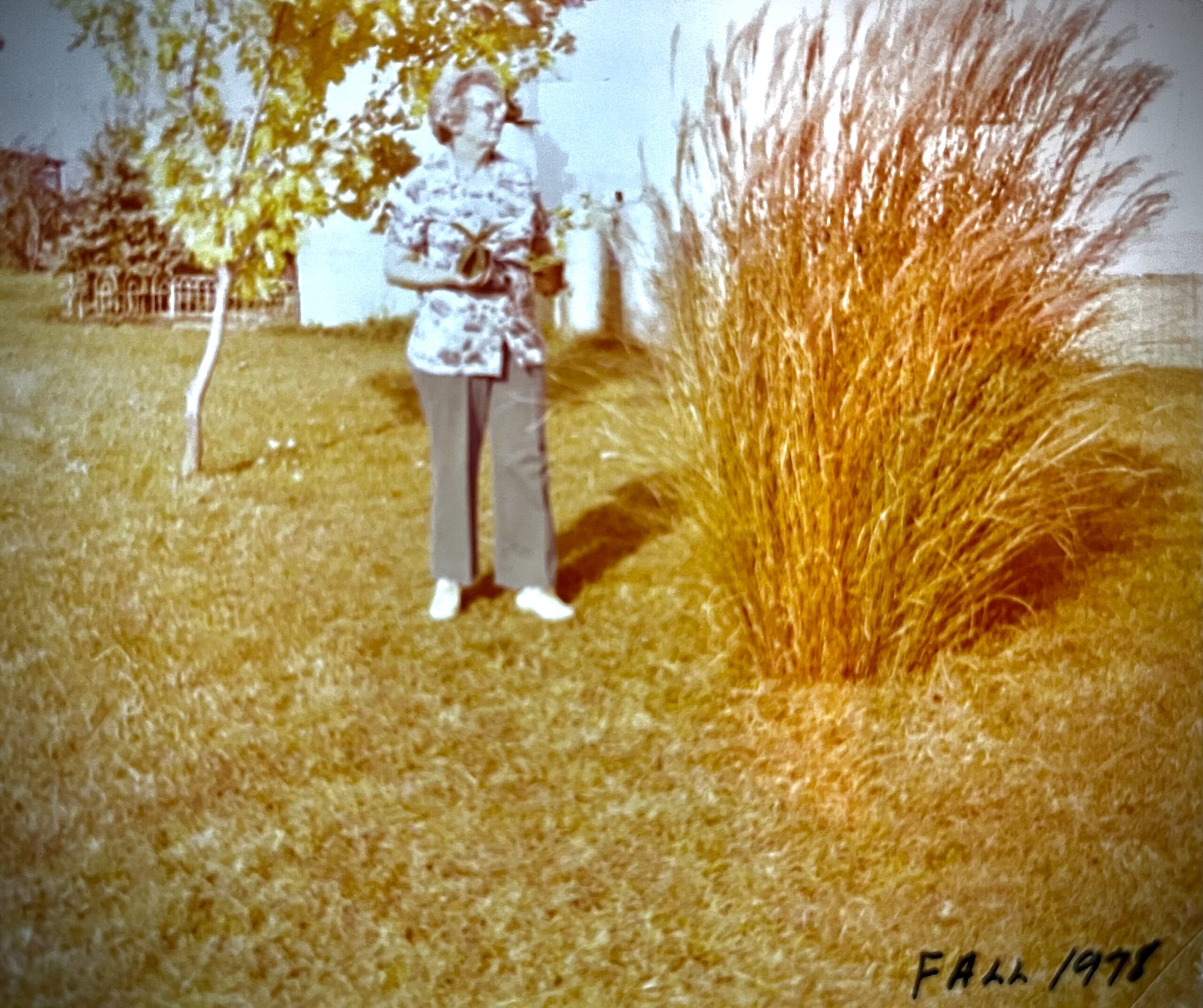 Also, this week she mentions grass plumes and Robin sent me some photos this week and one of those grass plumes is pictured, so I’m using it for my photo this week. (Granted it was from the fall of 1978 but we’re only a year off… close enough!) I didn’t have time to tweak it in Photoshop really to try and adjust the colors but there’s only so much you can do with these old grainy photos to begin with.